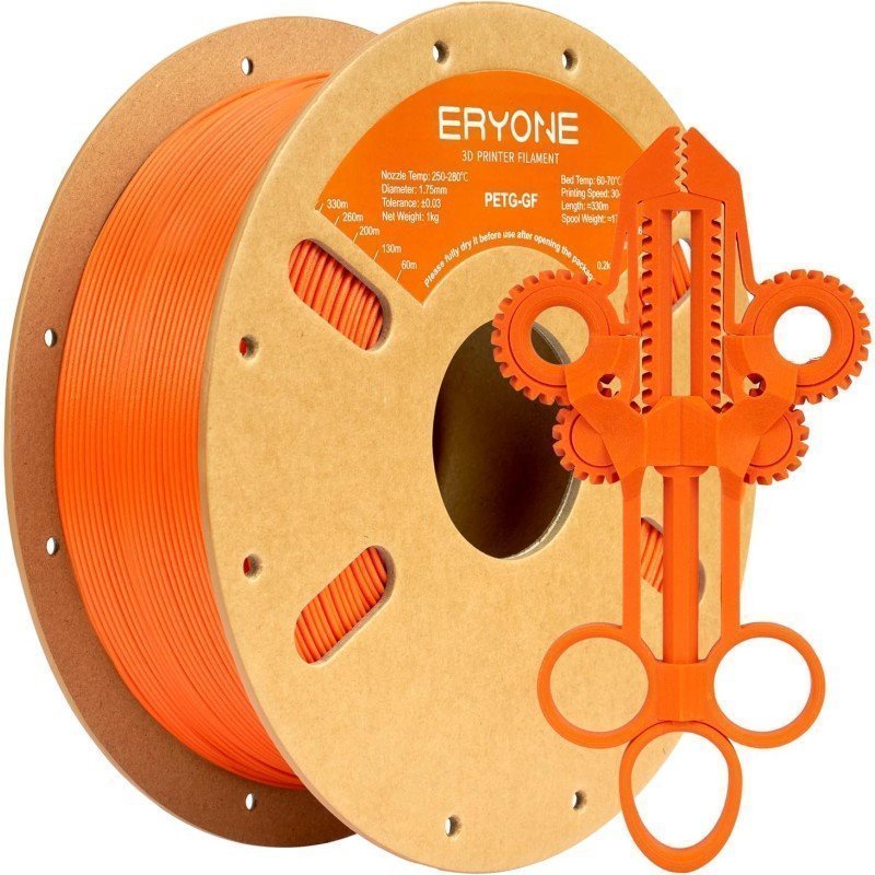 filamento PETG confibra di vetro e fibra di vetro valorizza le già ottime proprietà del PETG, aumentando la sua rigidità e resistenza agli urti